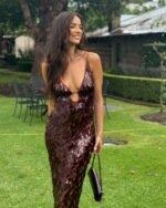 Sequins Backless Strapless Sleeveless Sheath Dress